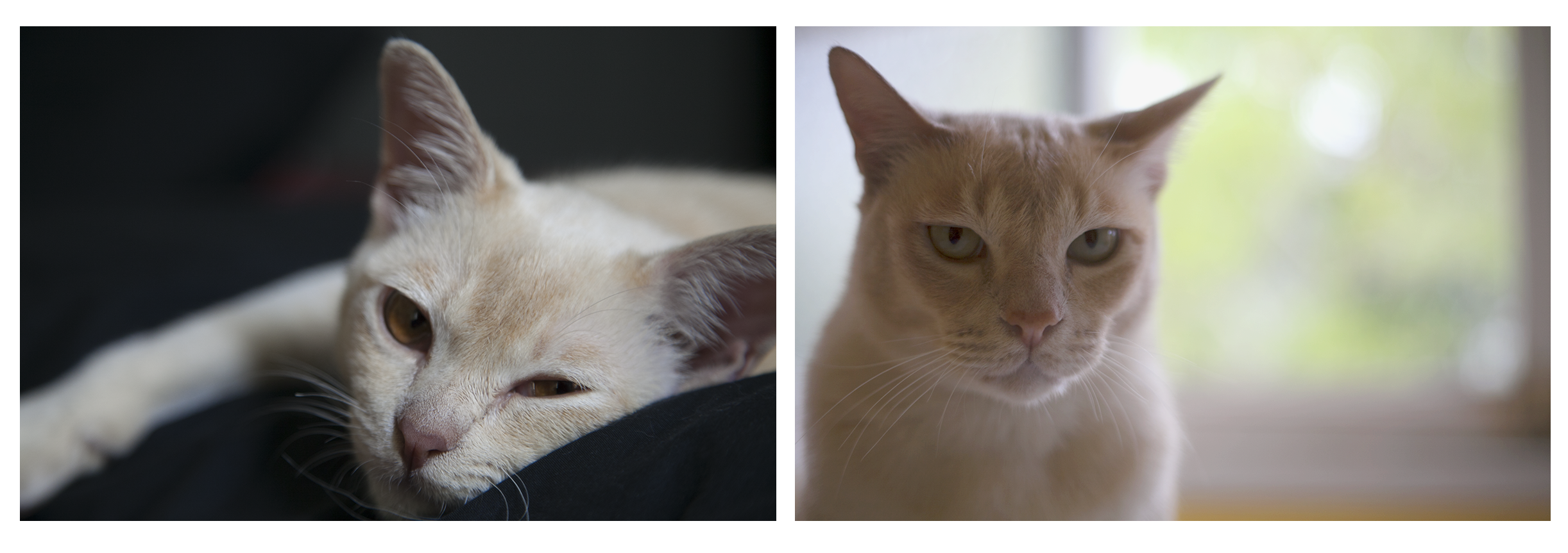 Leo was our James Dean cat. He was young and spunky and wild. It was hard to get a cuddle out of him, but he was so fun to be around. If a human was standing still, he’d scale them like a tree…and then get stuck, as kittens do. We laughed at him trying to stalk birds in the backyard, creeping and prowling without realising that his bright yellow fur was hardly camouflage.